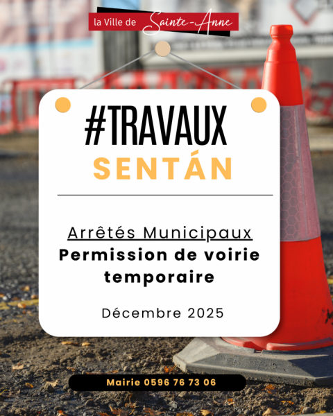 L'Entreprise CARAÏB MOTER st autorisée à effectuer des travaux de rabotage et de mise en oeuvre d'enrobé sur la voie existante au quartier Barrière La Croix, route de Fond Repos sur le territoirte de la ville de SAINTE-ANNE pendant une durée de 10 jours calendaires à compter du mercredi 10 décembre 2025.